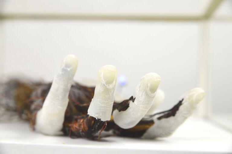 Das war es was du sagen wolltest. 2018, found footage and self made, silicone an robotics, ASMR sound, 01:03min